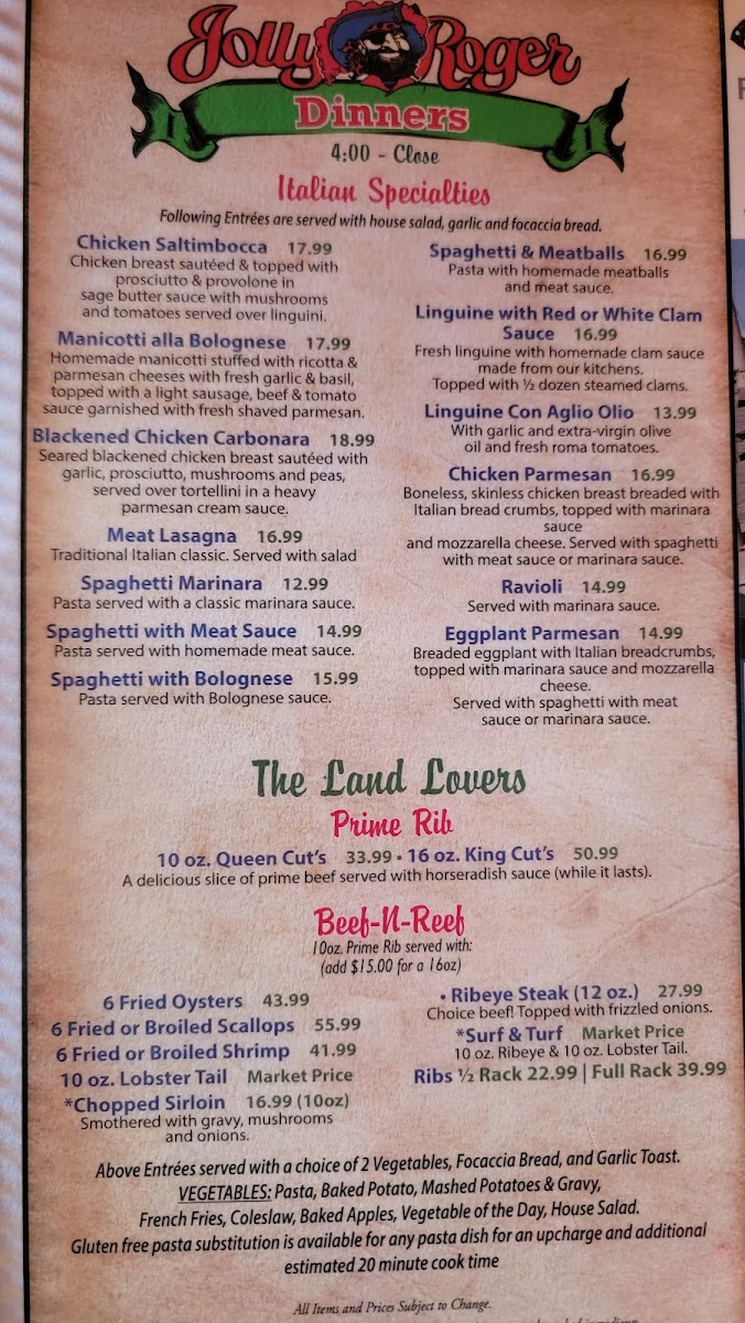Welcome to The Jolly Roger Restaurant, a culinary gem nestled in the heart of the Outer Banks. This lively establishment beckons with its eclectic decor and vibrant atmosphere, creating an inviting space for both locals and tourists alike. From the moment you step inside, you're greeted by a medley of colors and themes that transport you into a world of whimsy and delight.